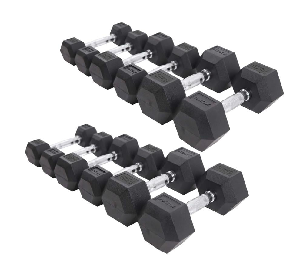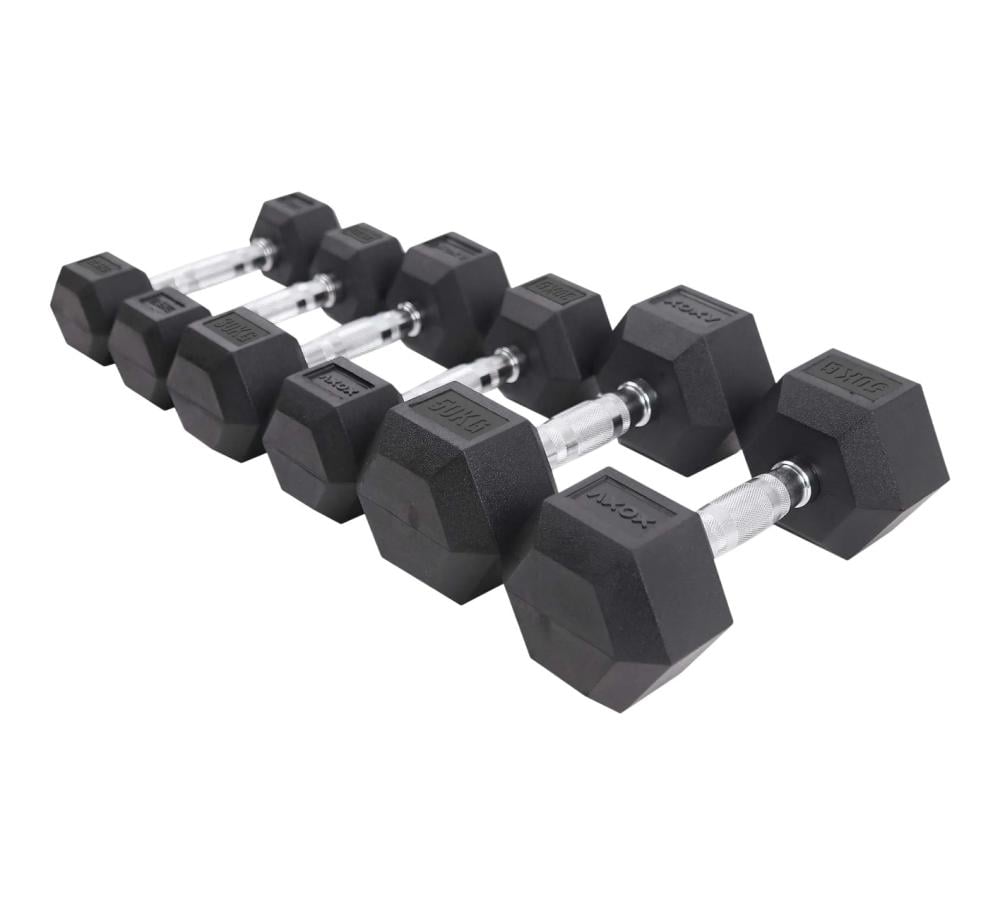 مجموعة دمبل سداسية مطلية بالمطاط من Axox Fitness - زوج | 2.5 كجم - 25 كجم